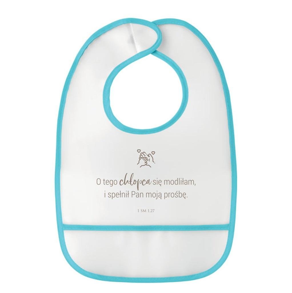 Śliniak dla twojego dziecka. A na nim tekst, który przypomni ci podczas każdego posiłku, aby być wdzięcznym za Dar Boży jakim jest Twoje Dziecko.Śliniak jest nieprzemakalny, zawiera dodatkową kieszonkę z przodu zabezpieczającą przed wydostaniem się jedzenia na ubranie. przeczytaj całość