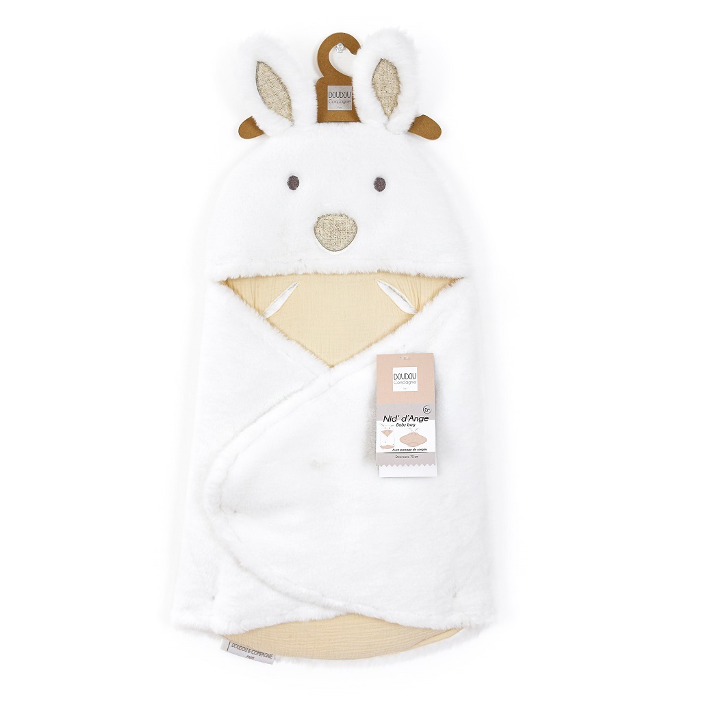 Doudou Plyšová bílá dečka s kapucí Happy Wild 70 cm