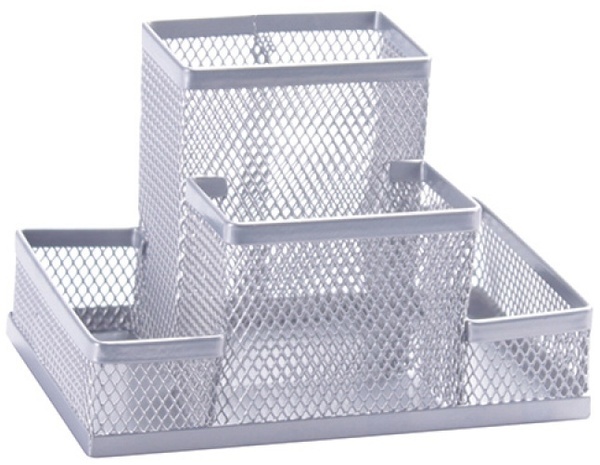 Przybornik na biurko z siatki metalowej 4-kom.srebrny, Q-Connect