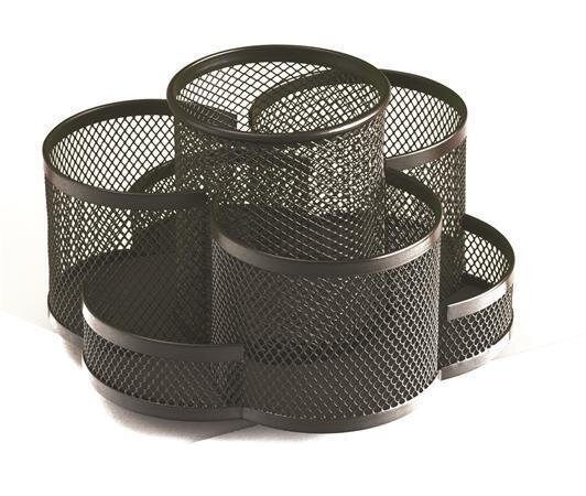 Stojánek na psací potřeby, černá, 7 dílný, drátěný, otočný, DKC2483