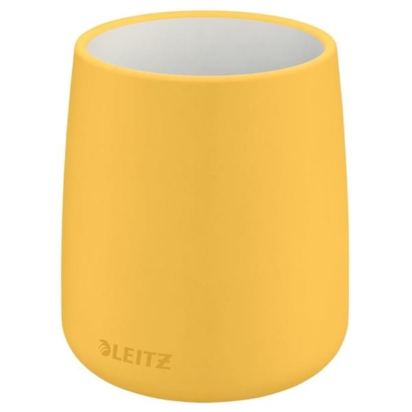 Produkty Leitz Cosy wprowadzają do Twojego miejsca pracy i domu styl dzięki minimalistycznemu wzornictwu, matowej powierzchni i ciepłej palecie kolorów Ceramiczny kubek z wysokiej jakości matową powłoką nadaje się do biura i domu, do przechowywania przyborów do pisania, a także do łazienki na szczoteczkę do zębów i pastę Wysokość: 108 mm Średnica otworu: 85 mm Kolor: matowy żółty