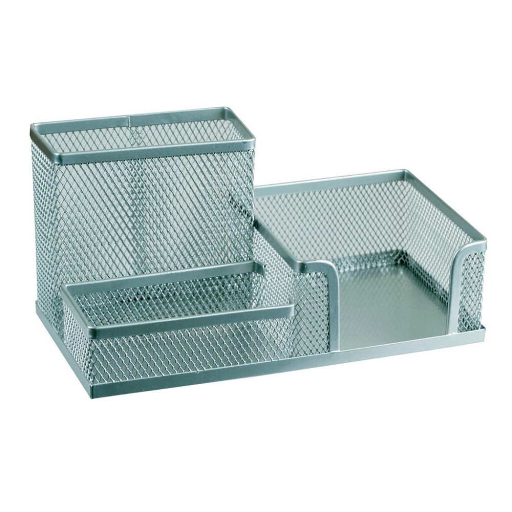 Drátěný organizér s třemi oddělenými částmi o rozměrech 204x104x103 mm bude skvělým pomocníkem pro organizaci Vašeho pracovního stolu. Obsahuje prostor určený pro spony, špalík - bloček a pera. Lze ukládat i jiné drobné kancelářské pomůcky. przeczytaj całość