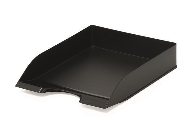 Pevný odkladač Basic na dokumenty do formátu A4.Vlastnosti: stohovatelný s odkladači ze stejné řady Basic; stabilní; odolný; výřez pro snadný přístup k uloženým dokumentům;Pro formát: A4 - C4Barva: černáMateriál: plastRozměry: 25,3x33,7x6,3 cm (ŠxDxH) przeczytaj całość
