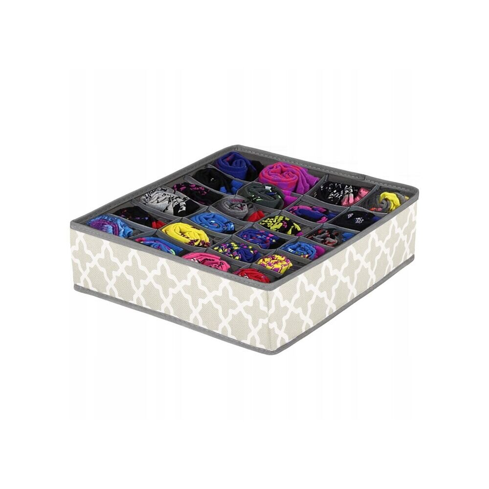 Przy wymiarach 33x33x10 cm łatwo zmieści się w większości szuflad i pomoże utrzymać porządek oraz szybki przegląd przechowywanych rzeczy. Ten tekstylny organizer to świetne rozwiązanie dla wszystkich, którzy chcą mieć przedmioty pod ręką i jednocześnie oszczędzić czas spędzany na ich poszukiwaniu.