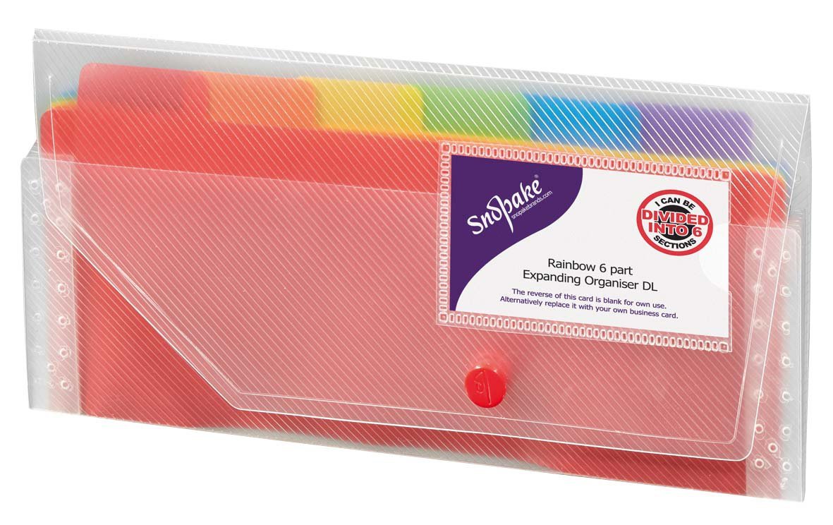Rainbow, s plastovými barevnými přihrádkami a lepicími štítky, kapsička vizitkového formátu na vnější straně, maximální kapacita 100 listů, Snopake garance 5 let, formát DL przeczytaj całość