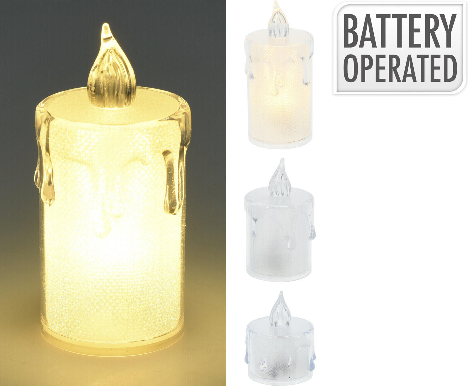 Svíčka čajová LED, sada 3díl. (pr. 3,6 cm, v. 5 cm, 6,5 cm, 7,9 cm), BÍ s bateriemi.