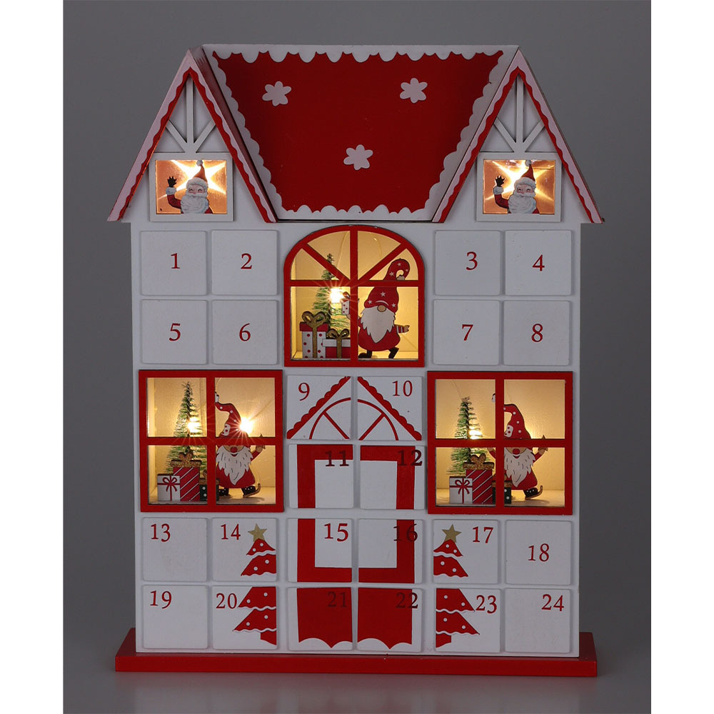 Adventní kalendář s LED světlem, červený a bílý
