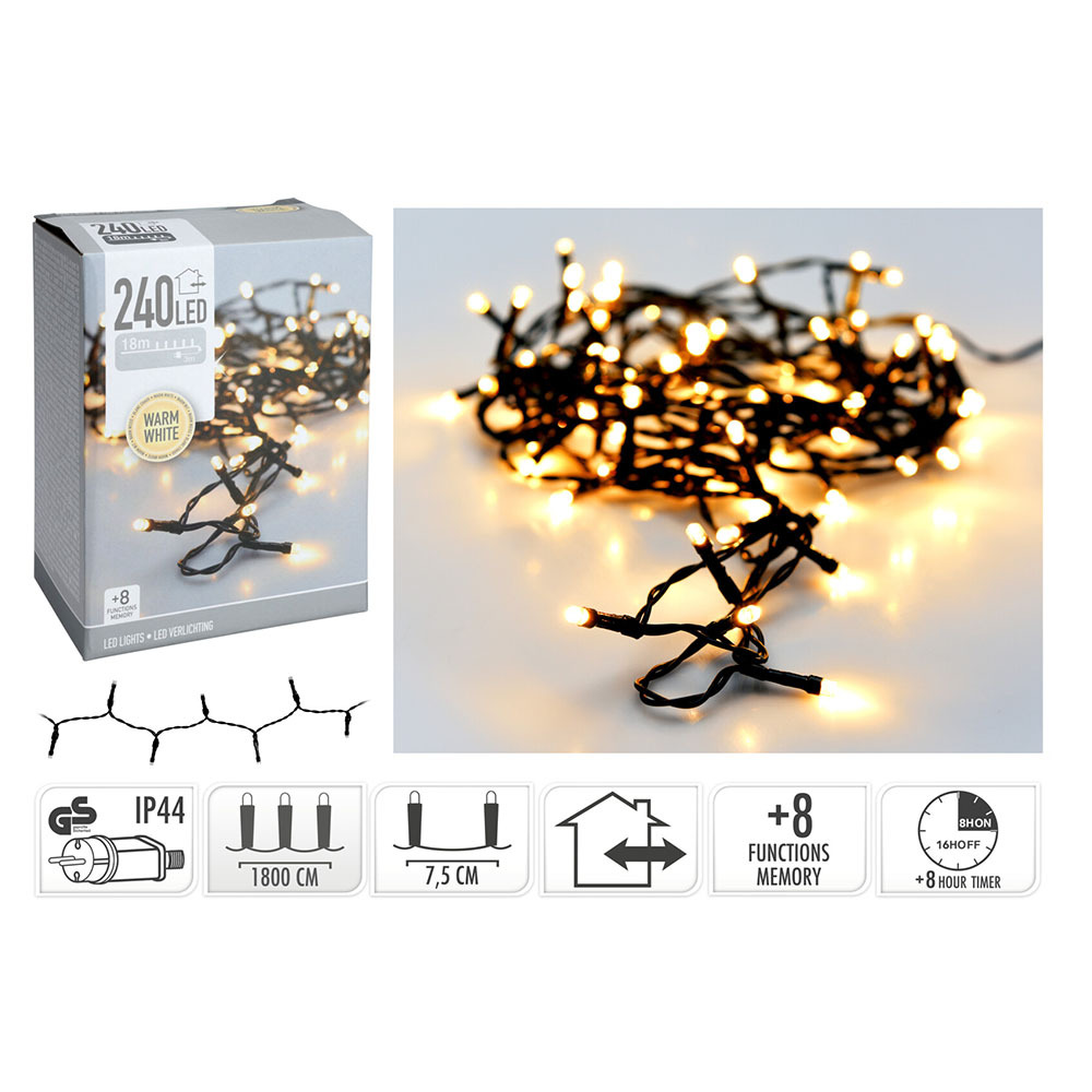 Łańcuch świetlny zawiera 240 diod LED o średnicy 5 mm.
