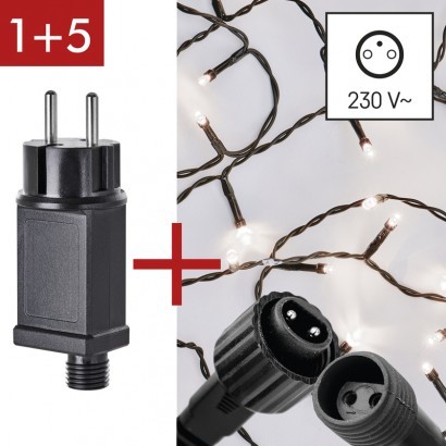 barva drátu: černá|barva světla: studená bílá|časovač: ne|dálkový ovladač: ne|délka přívodu: 5 m|funkce: svítí|krytí: IP44|LED mezera: 10 cm|materiál: PVC|možnost propojení: ano|počet LED: 100|použití: venkovní i vnitřní|příkon: max. 12 W|prodejní obal: 1 ks, krabice|produkt: spojovací řetěz s...
