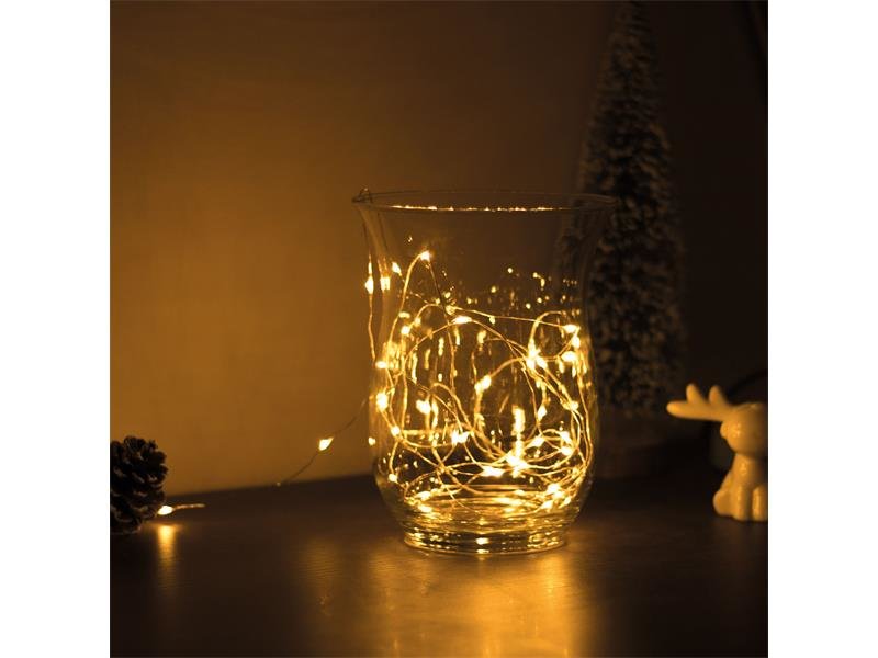 Ubierz swoje mieszkanie w świąteczną atmosferę dzięki tej girlandzie LED o ciepłej bieli. Kabel jest wyjątkowo cienki i dobrze giętki, dzięki czemu jest niemal niewidoczny. Możesz ją umieścić w dowolnym miejscu w domu, ponieważ nie potrzebujesz wtyczki - zasilanie bateryjne zapewnia długotrwałą, energooszczędną pracę.