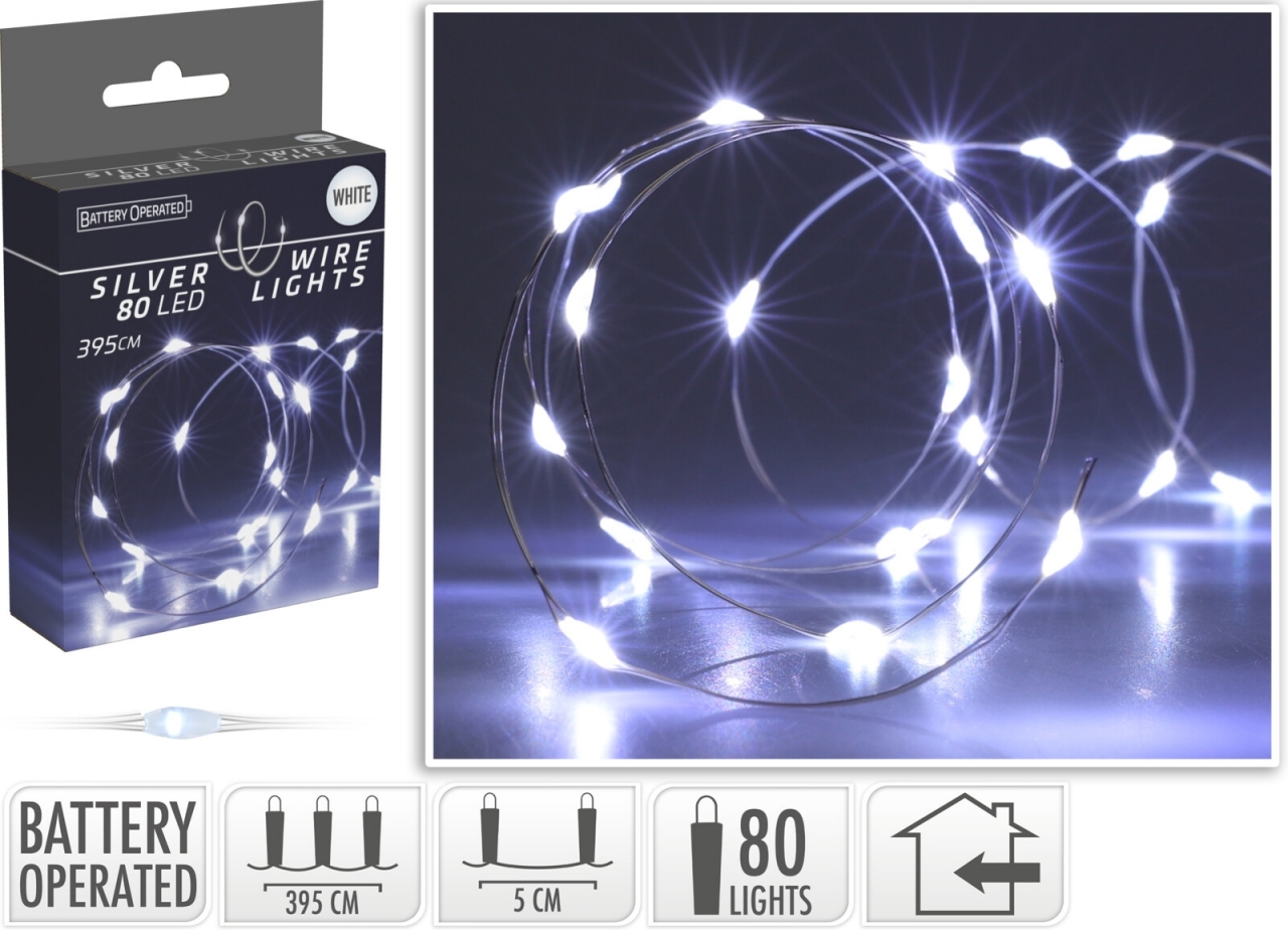 Světelný řetěz 405 cm, 80 mikro LED studené bílé světlo