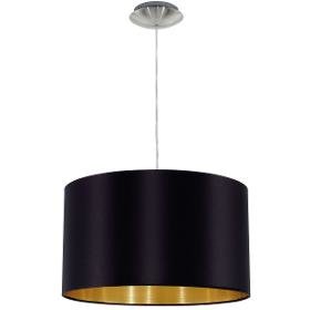 Závěsné svítidloEglo Maserlo 31599Druh patice: E27Zdroj světla: E27Zdroj součástí balení: bez zdrojeMax. výkon (W): 1X60WMateriál těla: ocelBarva těla: matný niklMateriál stínidla: textilBarva stínidla: černá, zlatáStupeň krytí: IP20Výška (mm): 1100Průměr (mm): 380Hmotnost (kg): 1,234 przeczytaj całość