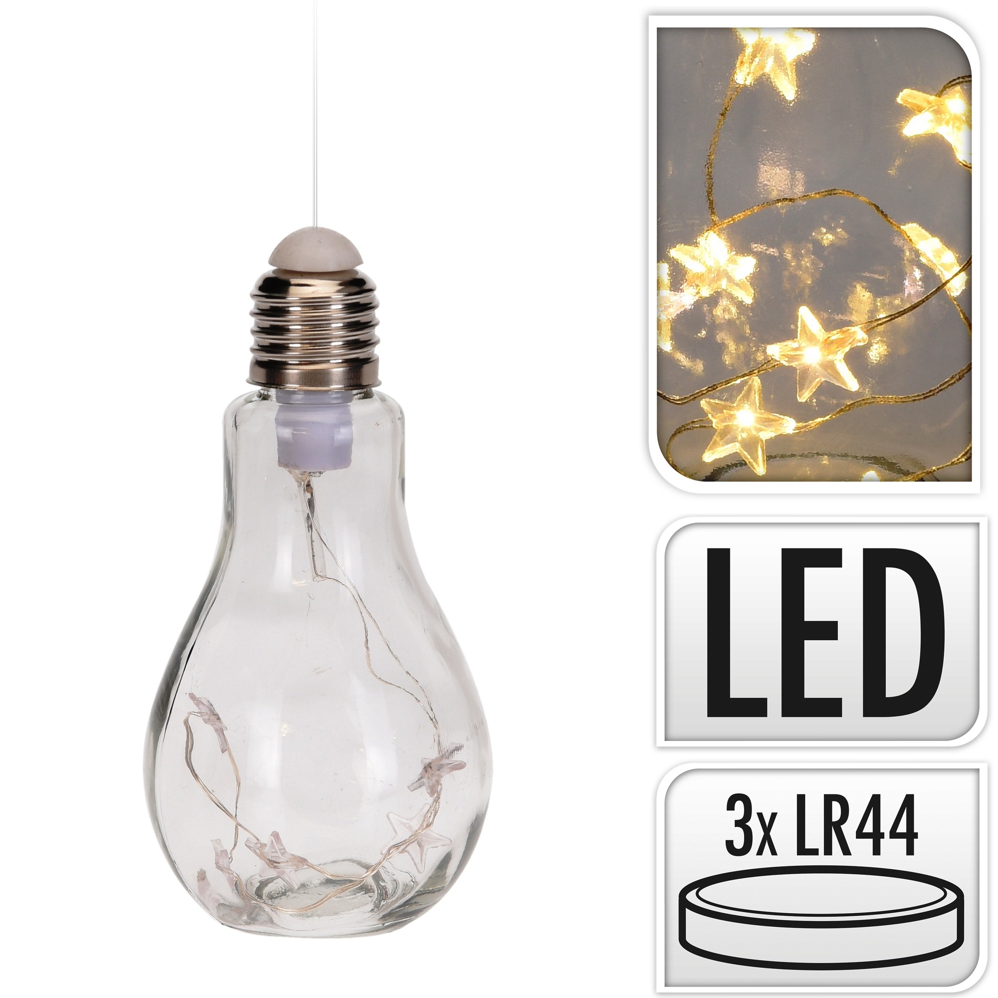 KOOPMAN, 59575 Svítící dekorace žárovka 5 x LED, 7 x 7 x 14 cm, telá žlutá, na baterieZávěsná dekorace v designu žárovky s 5ti led světýlky uvnitř, vykouzlí příjemnou atmosféru u Vás doma, na terase či v pergole.Rozměr 7 x 7x 14 cm. przeczytaj całość