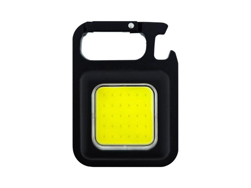 Mini COB LED svítilna 5W, USB nabíjení, 4 režimy, 5500K – s karabinou, magnetem, otvírákem a stojánkem (černá)