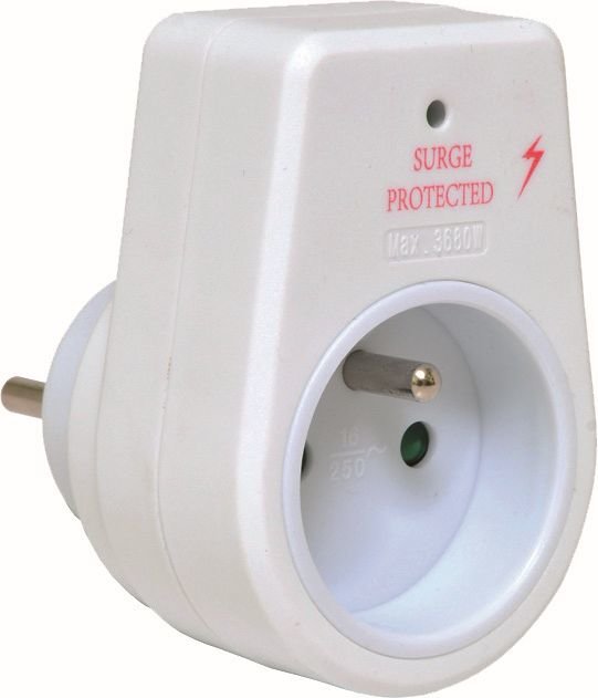 Zásuvka s přepěťovou ochranou bílá plast, IP20, 8x5,5 cm