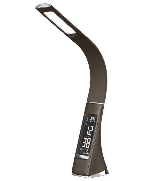IMMAX Leather Moderní LED stolní lampička s ohebným ramenem, dotykovým ovládáním jasu a informačním LCD panelem, který zobrazuje údaje o aktuálním času, datu a teplotě. Pokud by vás LCD panel rušil, je možné jej úplně vypnout. Napájení je realizováno skrze přiložený adaptér, nebo přímo z USB...