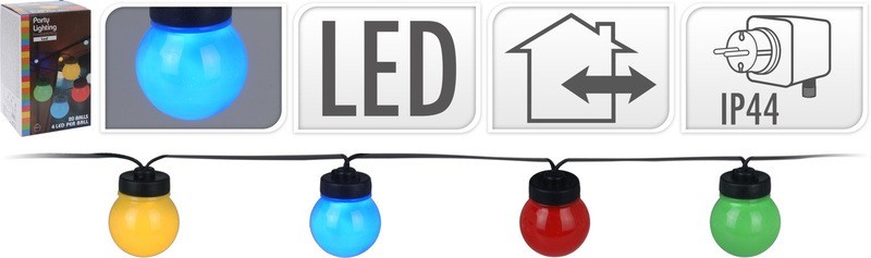 světelný řetěz s LED žárovkami ve tvaru barevné koulevykouzlí úžasnou atmosféru kdekoliv je rozvěsíte, ať už na zahradě, terase, balkóně nebo uvnitř místnostidokonalá dekorace pro Vaši zahradní party, grilovačku, oslavu nebo svatbu,..připojení do standartní zásuvky 220 Vúsporné LED s nízkou...