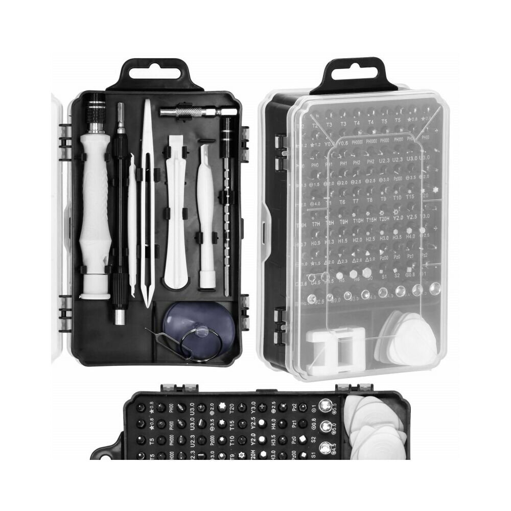 Základní informace: materiál: ocel/plast. počet prvků: 117 ks. Sada obsahuje: 100x nástrčné šroubováky. 1x hlavní šroubovák - potažený protiskluzovou gumou. 1x pinzeta. 3x plastový otvírač - pro vyjmutí pouzdra - bez jeho poškození. 1x gumový nástavec, pružný, otočný - délka 13 cm. 1x rovný,...