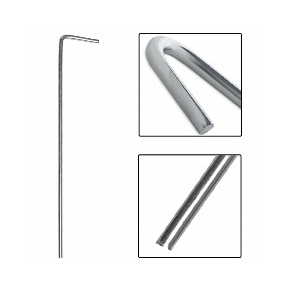 Zestaw 10 kołków / kołków namiotowych. Materiał: metal Długość: 17 cm Średnica: 4 mm Długość haka: 25 mm Kolor: srebrny Ilość: 10 szt. przeczytaj całość