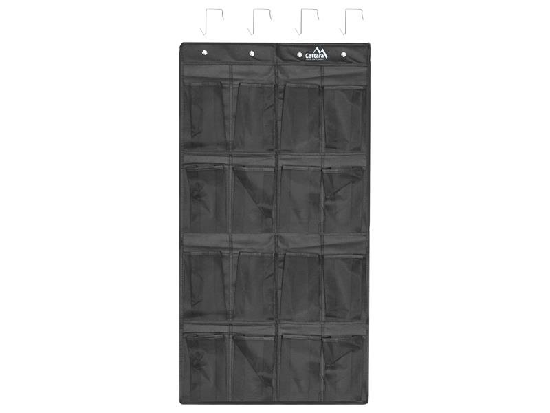 Organizer został zaprojektowany tak, aby jego użycie było proste i zrozumiałe dla każdego miłośnika kempingu oraz okazjonalnego turysty. O wymiarach 55 x 103 cm zapewnia łącznie 16 siatkowych kieszeni o wielkości 12 x 20 cm, w które wygodnie schowasz nie tylko butelki z napojami, ale także czołówki, portfel, zapasowe skarpety czy inne drobiazgi, które chcesz mieć zawsze pod ręką.