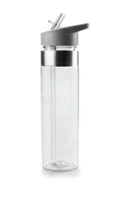 Plastikowa butelka do picia z kolorową gumą i nierdzewną zakrętką. Pojemność butelki wynosi 720 ml. przeczytaj całość