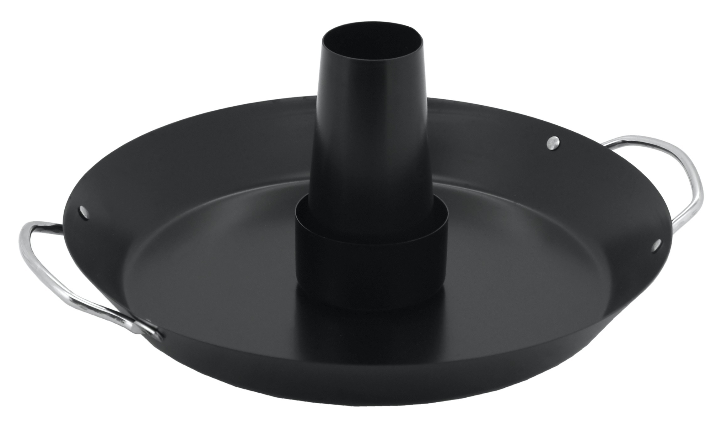 Stojak wykonany jest z wysokiej jakości czarno lakierowanej stali, która jest wytrzymała i łatwa do czyszczenia. Konstrukcja jest dwuczęściowa - klasyczna patelnia o średnicy 30 cm i głębokości 3,7 cm oraz stożkowy stojak o wysokości 13,5 cm, który bezpiecznie podtrzyma kurczaka podczas grillowania. Rączki ze stali nierdzewnej ułatwiają obsługę i gwarantują długą żywotność produktu.