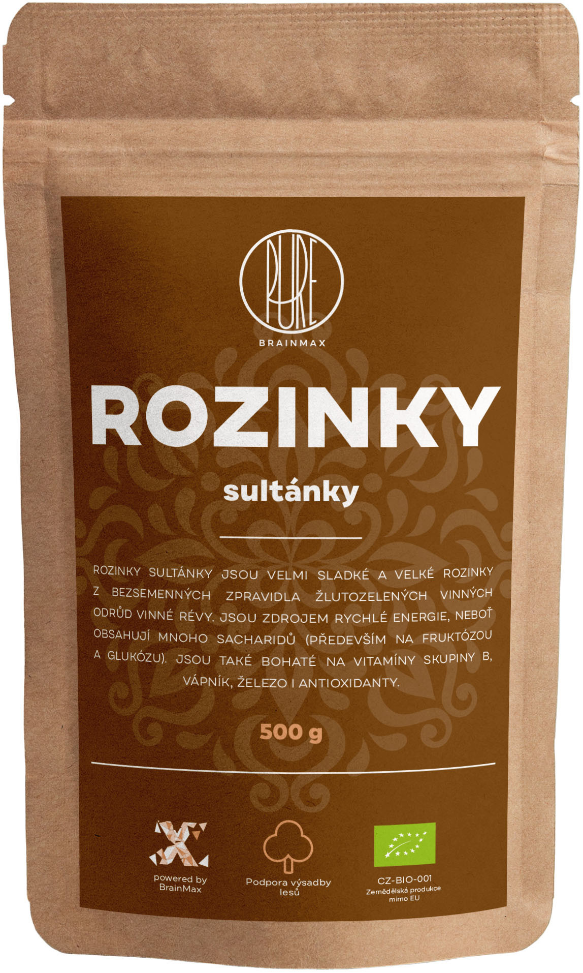 BrainMax Pure Rozinky Sultánky sušené BIO, 500g