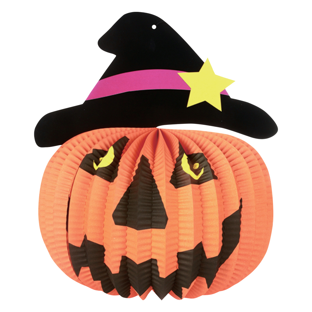 Lampion Dýně s kloboukem, papírový, kulatý, 26 cm, očko k zavěšení. Použití: dekorační účely, večírky a karnevaly. Upozornění: Nevhodné pro děti do 3 let. Není to hračka. Doporučuje se dohled dospělé osoby. Riziko vznícení a popálení. Držák na lampion není součástí balení. przeczytaj całość