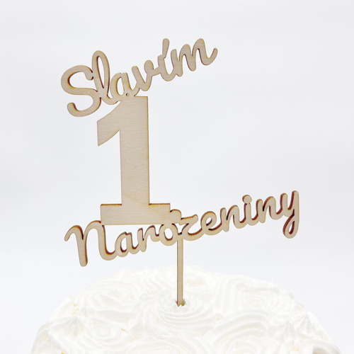 Ozdobný dřevěný zápich na dort ve tvaru nápisu Slavím 1. narozeniny. Tahle dekorační libůstka ozvláštní první narozeninový dort každého malého robátka. Vyrobeno s láskou v ČR.   Velikost 135 x 190mm. Balení 1 ks przeczytaj całość