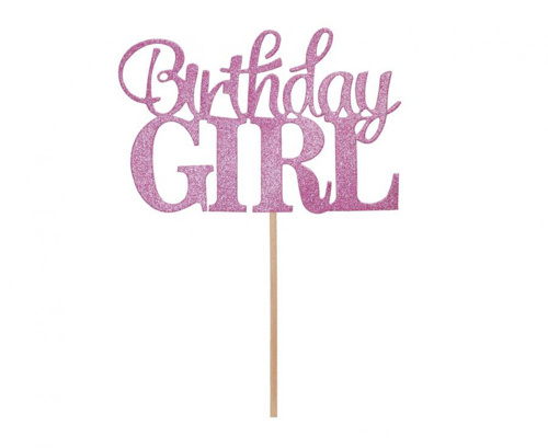 Dekorace na dort nápis Birthday Girl- růžová 10 x 7 cm
