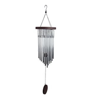 Závěsná zvonkohra.Zvonkohra je vhodná pro venkovní i vnitřní použití.Rozměry : 15 × 6 cm, délka 82 cm.Barva : kombinace stříbrná, hnědá.Materiál na bázi dřeva, kov. przeczytaj całość