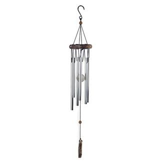 Wisząca dekoracja dzwonkowa. Dzwonek wietrzny nadaje się do użytku zewnętrznego i wewnętrznego. Wymiary: 7 x 7 cm, długość 50 cm. Kolor: kombinacja srebrnego i brązowego. Materiał: drewno i metal. przeczytaj całość