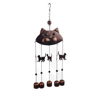 Závěsná zvonkohra s motivem koček.Zvonkohra je vhodná pro venkovní i vnitřní použití.Rozměry : 17 × 10 cm, délka 52 cm.Barva : měděná.Materiál : kov. przeczytaj całość