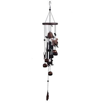 Závěsná zvonkohra s motivem koček.Zvonkohra je vhodná pro venkovní i vnitřní použití.Rozměry : 10 x 10 cm, délka 73 cm.Barva : měděná.Materiál na bázi dřeva, kov. przeczytaj całość