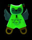 Unikátní muchláček v podobě sovy je vyrobený z materiálu, který ve tmě jemně svítí. Je tak ideální jako hračka do postýlky pro uklidnění vašeho dítěte v noci. Součástí hračky jsou i tři kousátka z jemného silikonu, která pomáhají dítěti při prořezávání prvních zoubků. Šusticí křídla a různorodé textury hračky budou lákat dítě ke zkoumání.