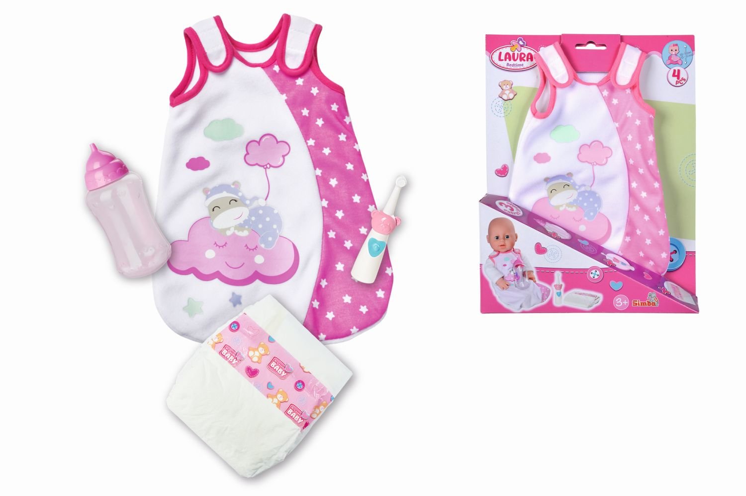 Ten zestaw jest idealnym uzupełnieniem dla lalek o rozmiarze 30-38 cm i zawiera śpiwór, szczoteczkę do zębów, pieluszkę oraz butelkę. Dzięki niemu dzieci będą miały jeszcze więcej zabawy przy zabawie w mamę, a jednocześnie rozwijać będą wyobraźnię i umiejętność opieki nad lalkami. Wszystkie elementy są zaprojektowane tak, aby były praktyczne, łatwe w użyciu i doskonale pasowały do lalki Laury.