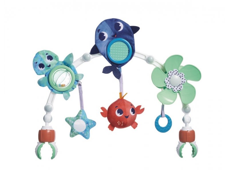 Hrazda Tiny Love je vhodná na autosedačku, kočárek či lehátko. Hrazda s hračkami v podobě kamarádů z moře nabízí množství aktivit, např. chrastítko, kousátko, otáčecí květinu nebo bezpečné zrcátko. Hudební krab hraje 4 různé melodie. Dítě si snadno hudbu samo aktivuje.