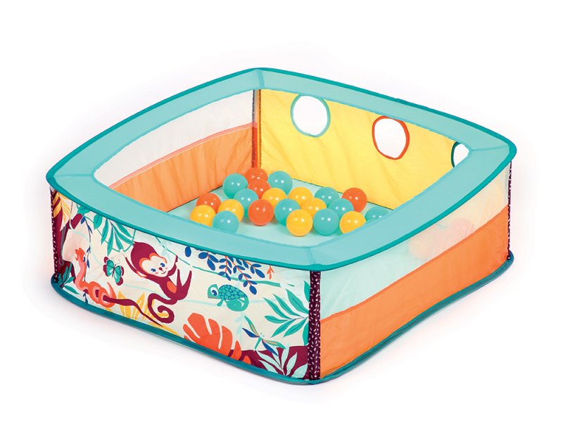 Kojec do zabawy z pięknymi ilustracjami zwierzątek z dżungli i czterdziestoma piłeczkami zapewni Twojemu dziecku przyjemne i przytulne miejsce do zabawy. Piłeczki dzięki kojcowi nie rozlecą się po całym pokoju, dla większej frajdy możesz do kojca dodać dowolne inne zabawki.