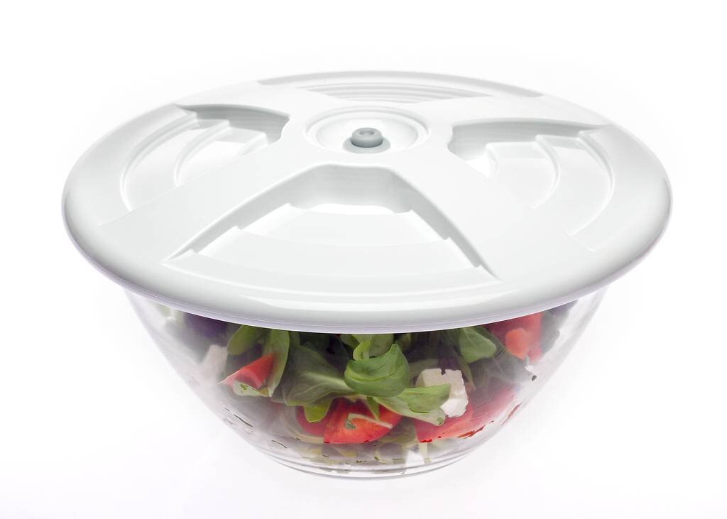 Průměr: 25,5 cmZavakuování jakéhokoliv rovného povrchu od 18,5 – 24,5 cmBarva: bíláMateriál: Těsnící díly a ventil: silikonVrchní část víka: plast ABS Oba materiály jsou bezpečné pro použití s potravinami a neobsahují BPAUpozornění: součástí balení není vakuová pumpa przeczytaj całość