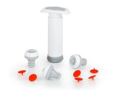Souprava obsahuje: - 3 vakuové zátky určené na vakuové utěsnění nápojů v lahvích např. víno, džusy, čerstvě lisované šťávy a jiné - 5 univerzálních vakuových kolíků na vytvoření vakua ve všech nakládaných a konzervovaných potravinách (Možnost používat opakovaně) - děrovač pro vytvoření otvoru do...