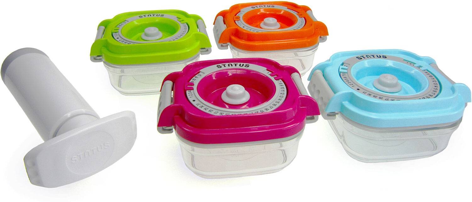 Materiál: je potravinám nezávadný, vyrobené z vysoce kvalitního polykarbonátu (stejný materiál je používán pro výrobu oken v letadlech, tzv. umělé sklo). Těsnění a ventil jsou vyrobené ze silikonu a zbytek z ABS plastu, který zajišťuje dlouhou životnost Rozměry: 109x89x52mm Hmotnost: 120g Set obsahuje: 4x 0.15l obdelnikový box; vakuová ruční pumpa