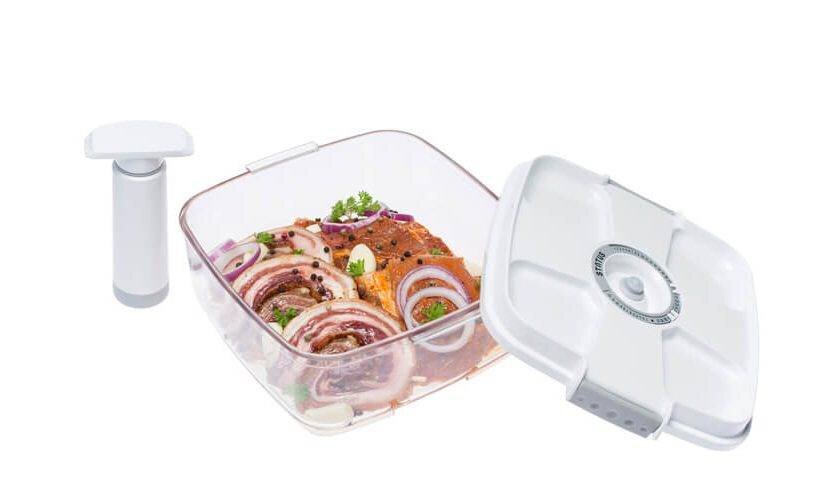 Zestaw zawiera: - 2 l próżniowy pojemnik do marynowania (20x10,5cm) - ręczna pompa próżniowa przeczytaj całość