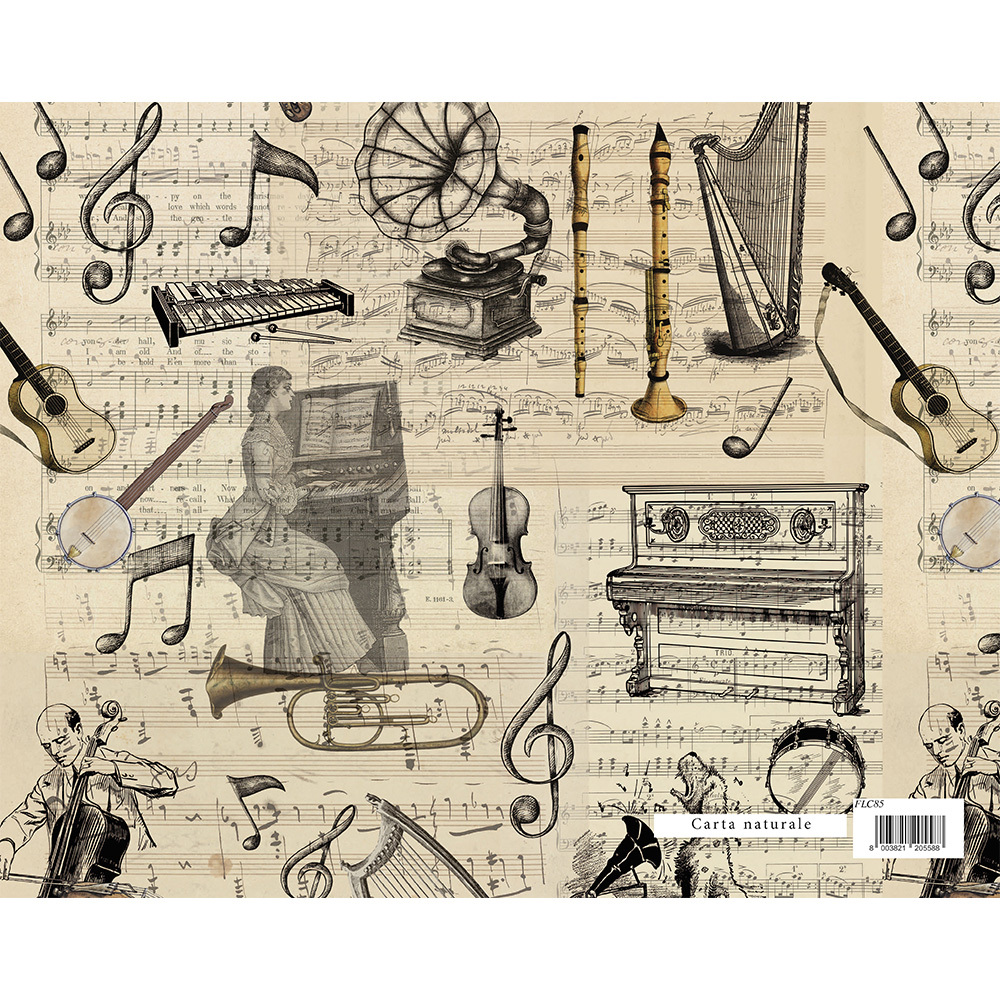 Papier do pakowania prezentów FLORENTIA z motywem nut i instrumentów muzycznych to świetny wybór dla tych, którzy chcą, by ich upominki wyglądały stylowo i oryginalnie. Dodaj opakowaniu szyku i muzycznego klimatu, który ucieszy każdego miłośnika sztuki i muzyki.