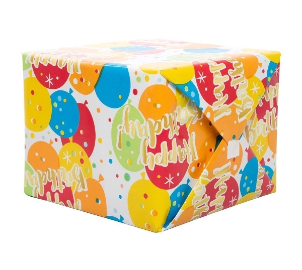 Urodzinowy papier do pakowania prezentów z wzorem napisu "Happy Birthday" i balonów. Materiał: Papier Wymiary: 75 x 150 cm Opakowanie: 1 szt. przeczytaj całość