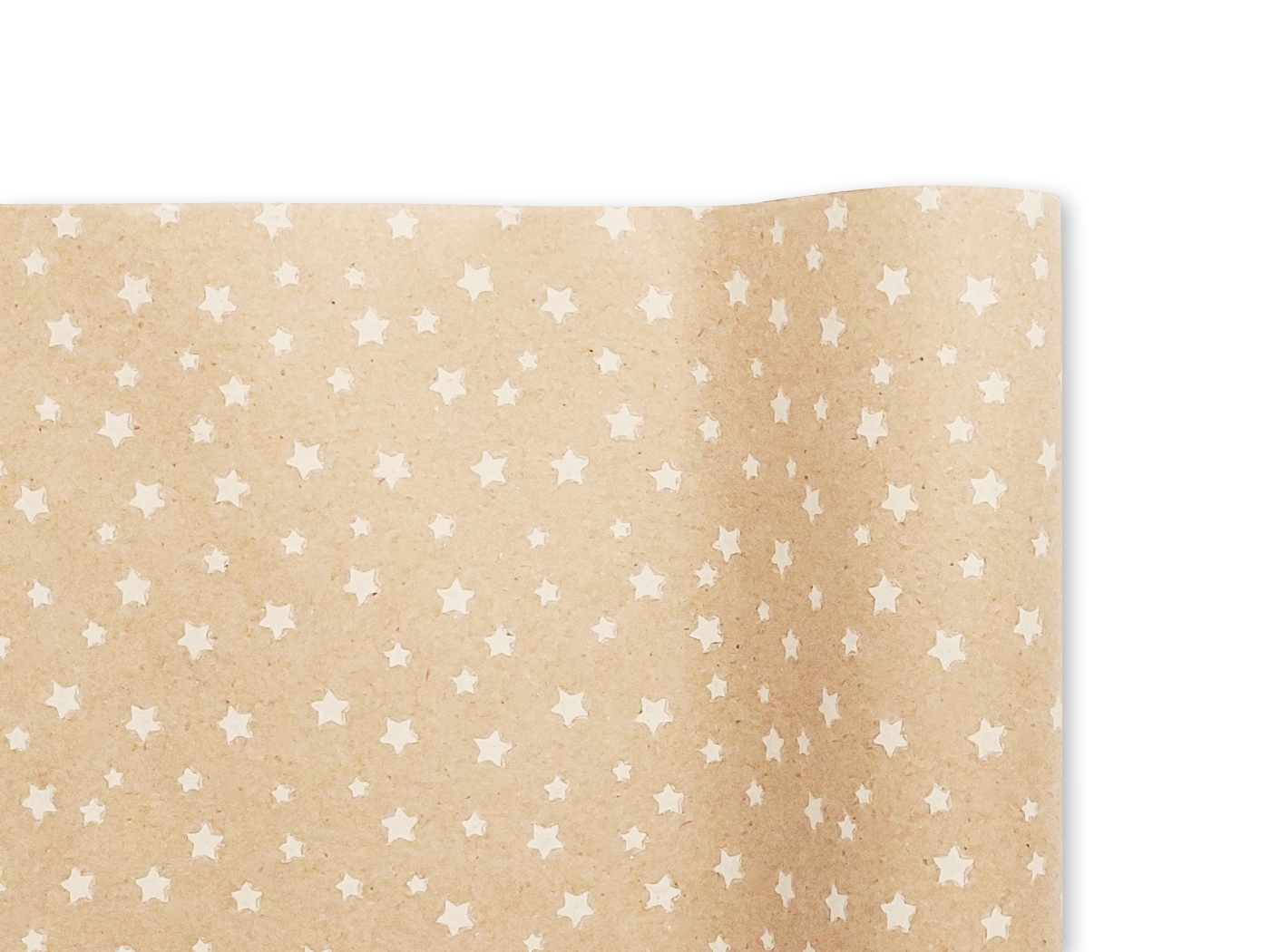 Vánoční papír natur, š. 70cm/2m HVĚZDY - potisk bílý