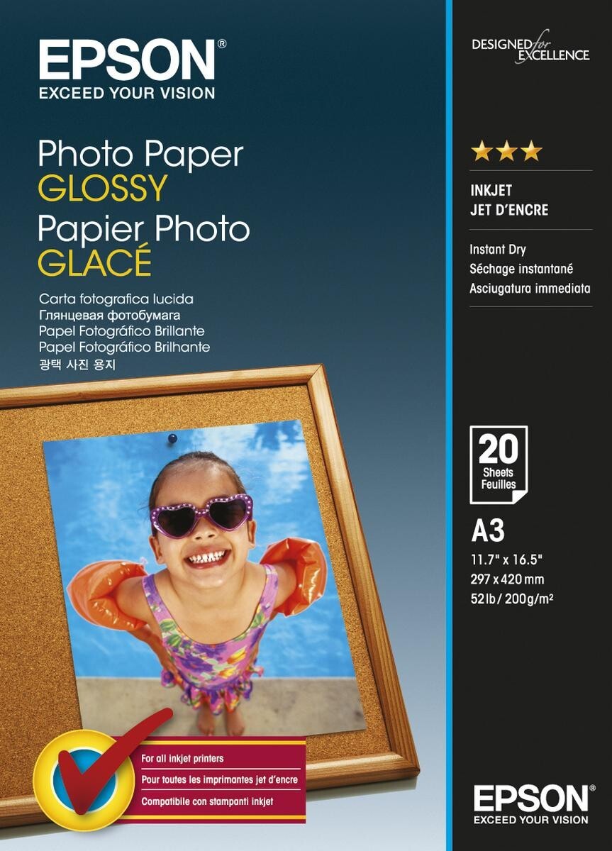 Epson Glossy Photo Paper, foto papír, lesklý, bílý, Stylus Color, Photo, Pro, A3, 200 g/m2, 20 ks, C13S042536, inkoustový