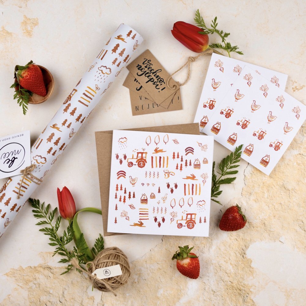 Be Nice sada na balení dárků - Venkov obsahuje: 3 ks papíru 68 x 47 cm1 ks přání Venkov 1 ks přírodní obálky1 ks sady jmenovek (3 ks) Všechno nejlepší1 ks jutový provázek (15 m)2 archy samolepekOriginální autorský designMotivy této balicí sady ilustrovala česká výtvarnice Bára z Nikolajky....