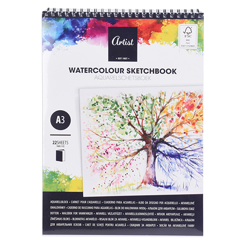 Skicař na malování akvarelovými barvami A3 / 22 listů se spirálou, 160g/m2