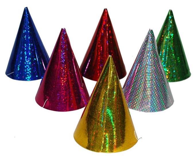 Párty kloboučky, 6 ks, metalické třpytivé barvy