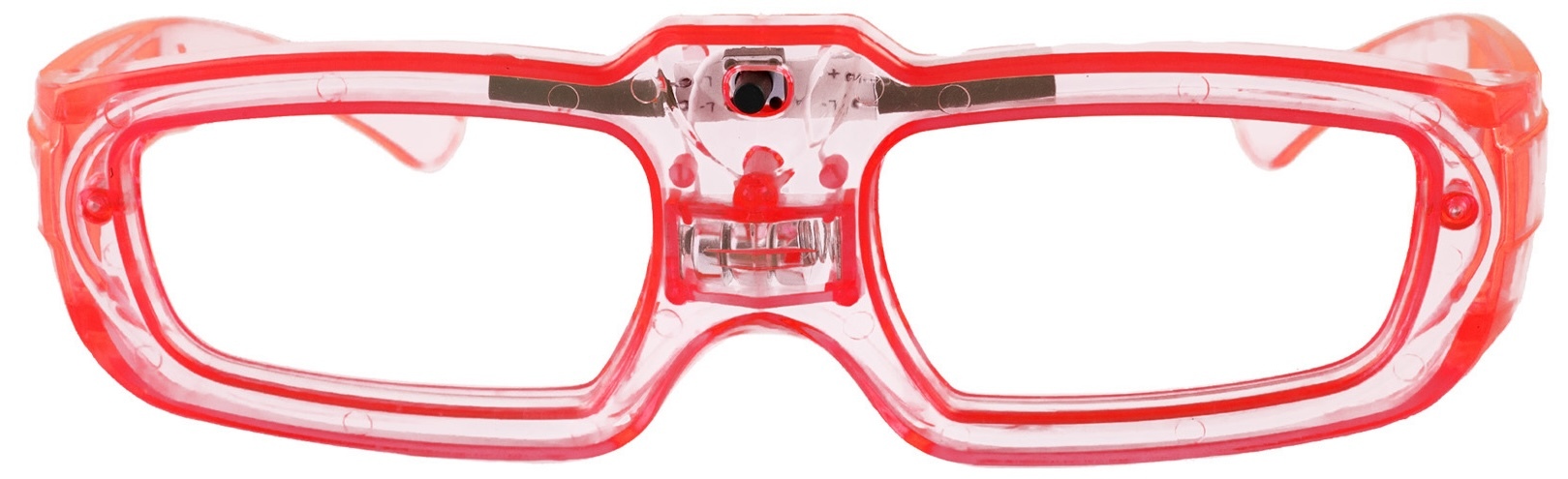 Czerwone świecące okulary z trzema diodami LED. W zestawie baterie.Kolor: czerwonyTyp baterii: pastylkowa (AG3)Liczba baterii: 3Waga: 0,03 kg przeczytaj całość